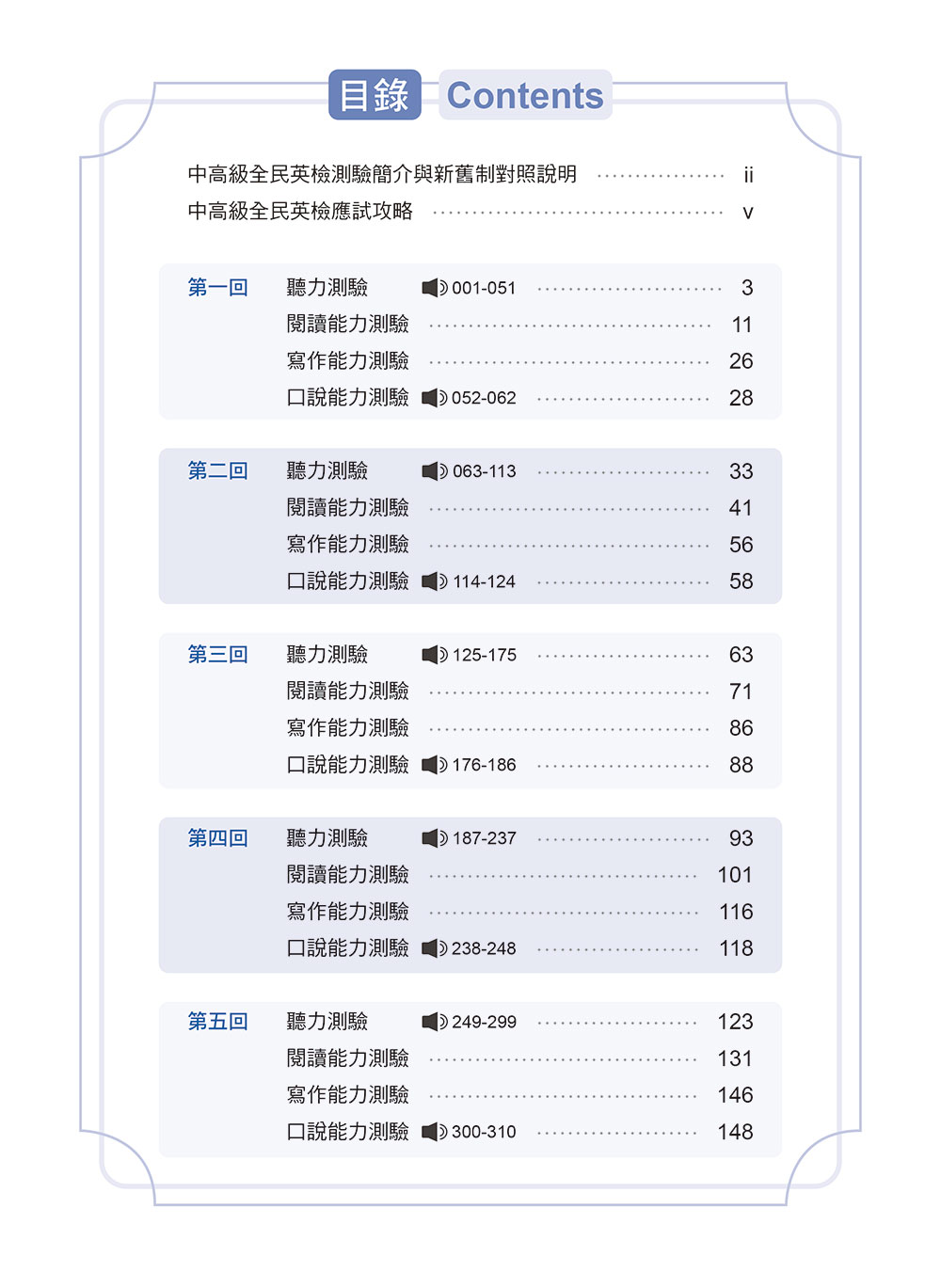 題目難度稍高於正式考題,聽力測驗速度較正式考題略快,並由專業外籍錄音老師錄製,讓你臨場應試無往不利!