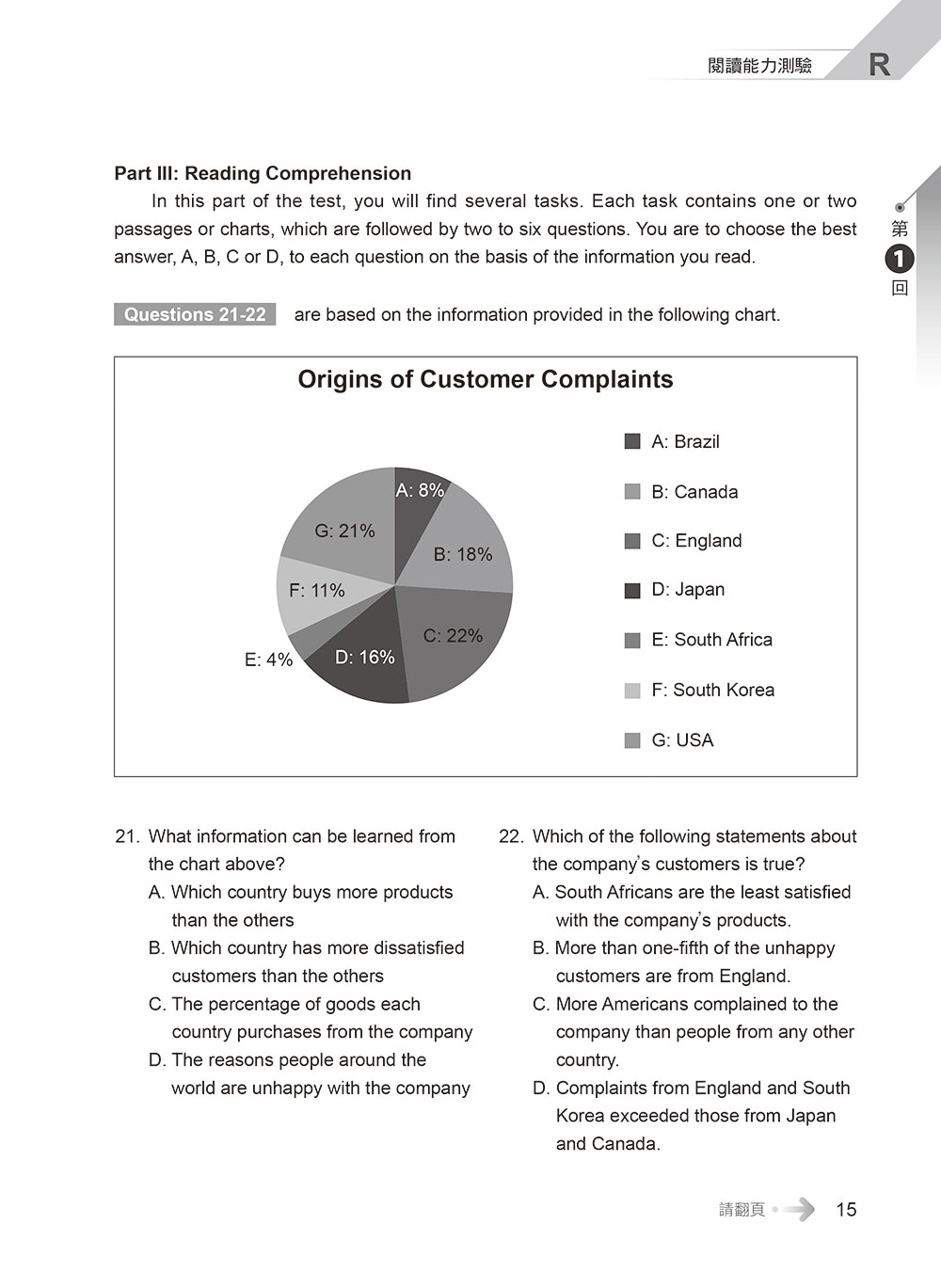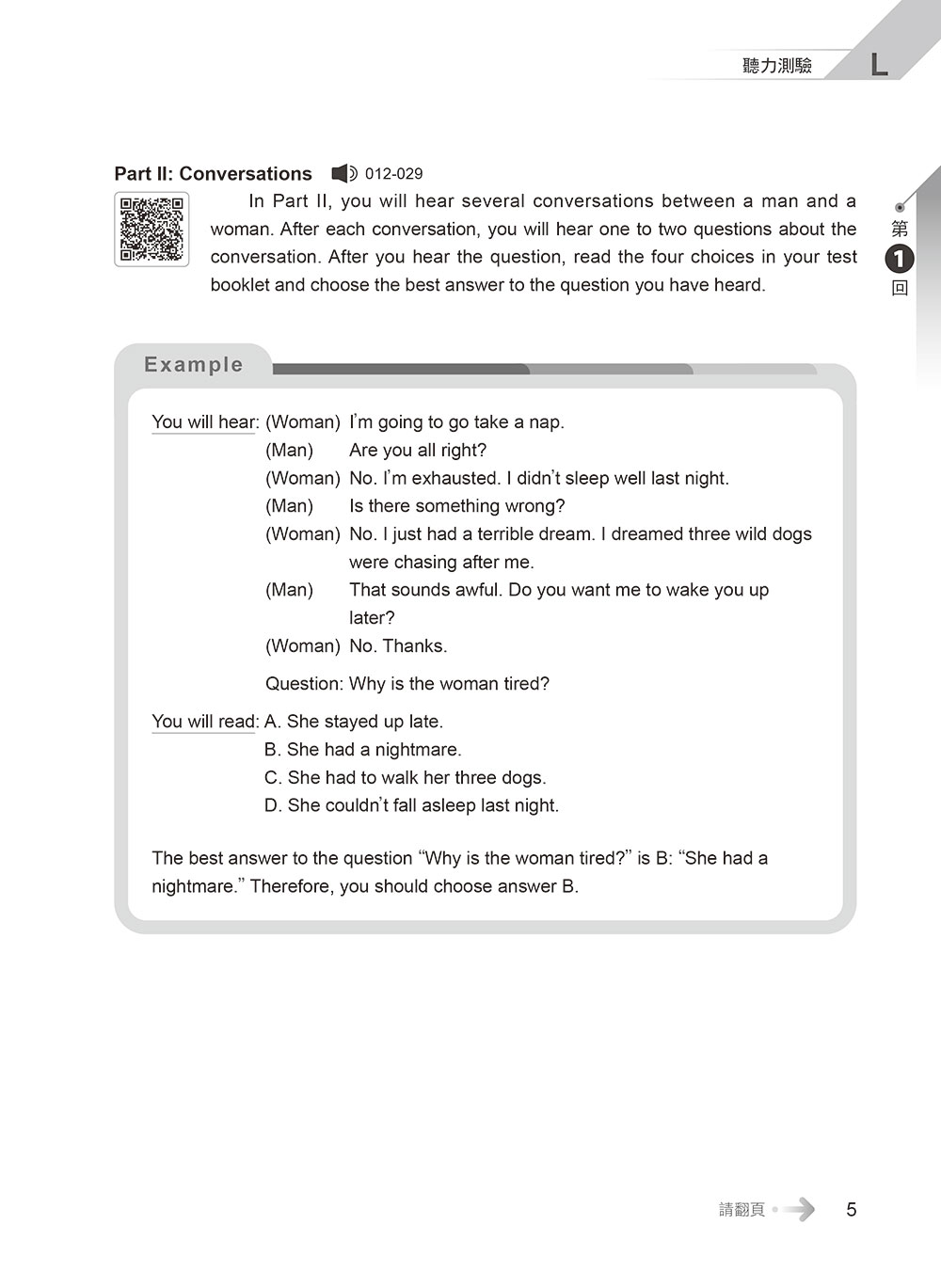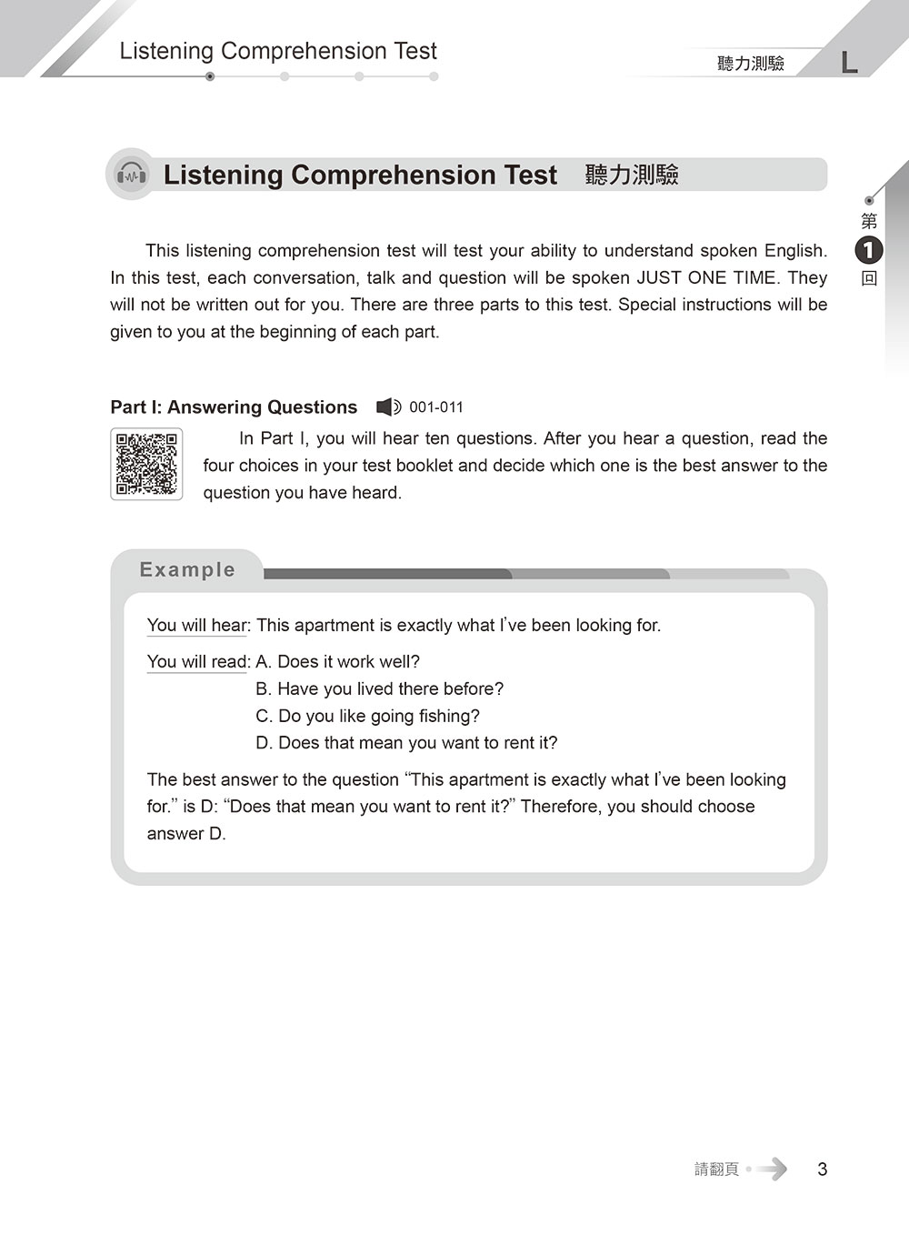 聽力測驗 → 第一部分「問答」15 題→10題