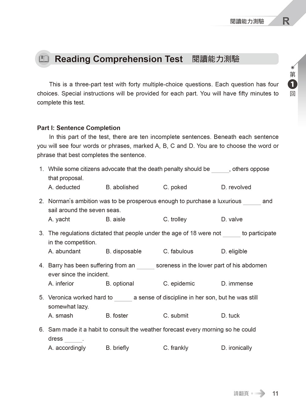 閱讀測驗 → 第一部分「詞彙和結構」改為「詞彙」