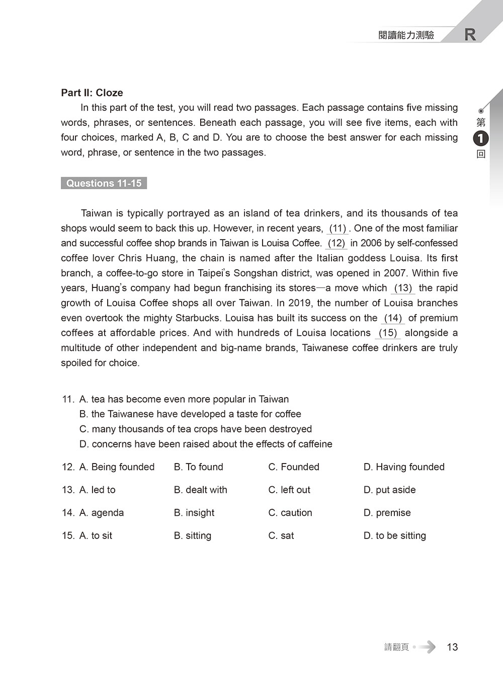 第二部分「段落填空」15 題→10題,並新增文意理解題