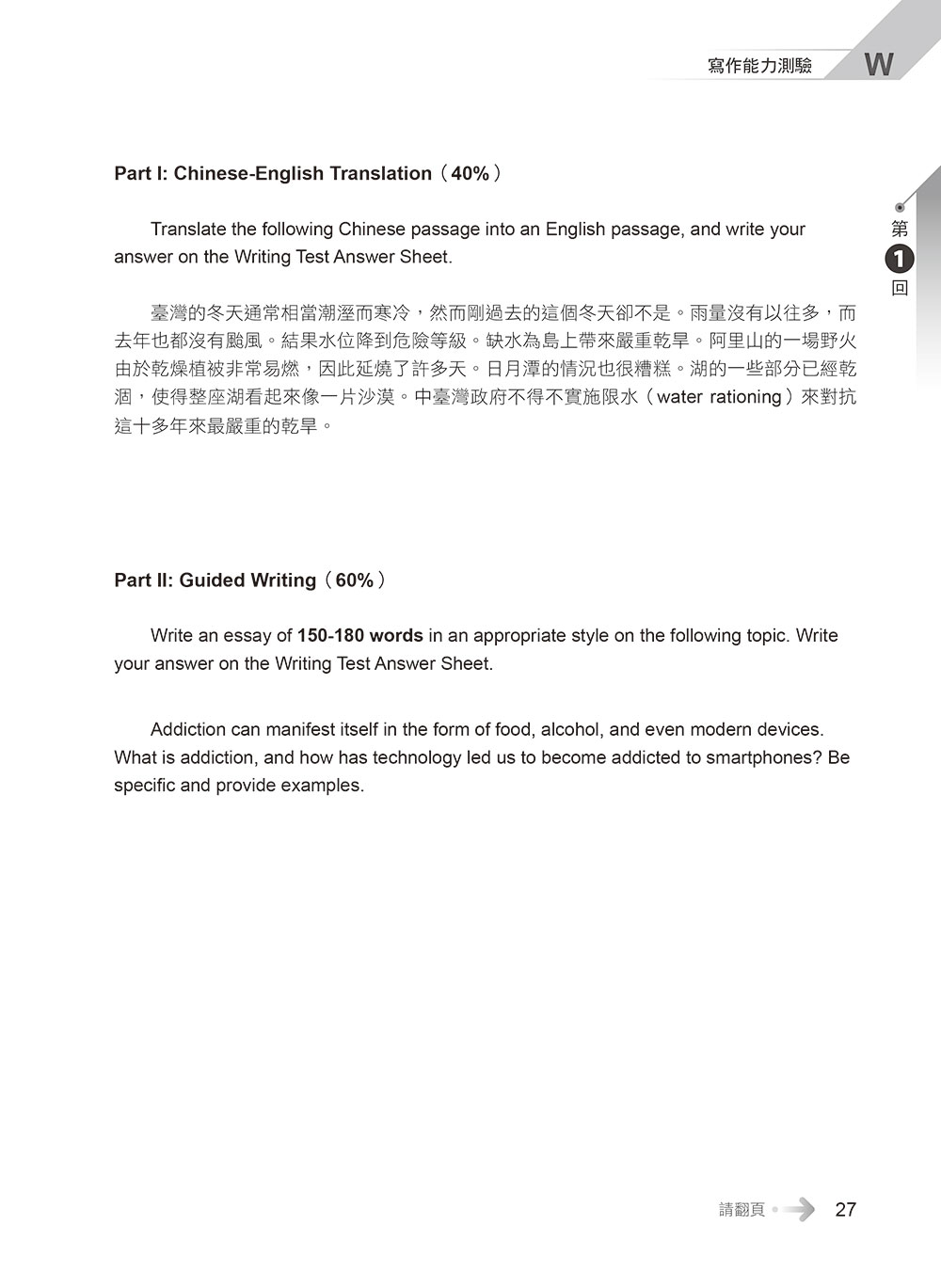 寫作測驗 → 題型與題數不變
