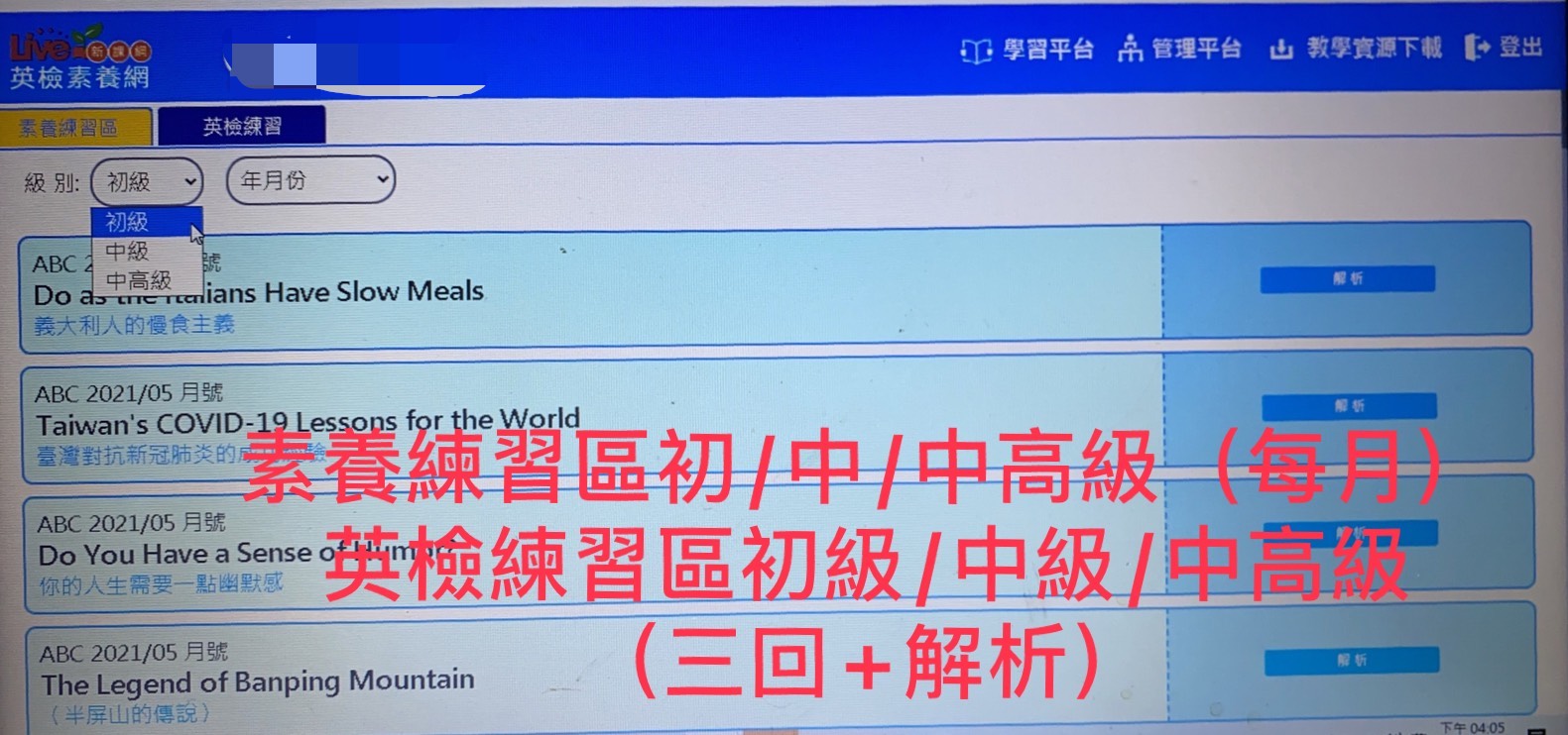英檢素養網e學卡-初級180天
