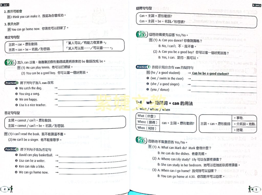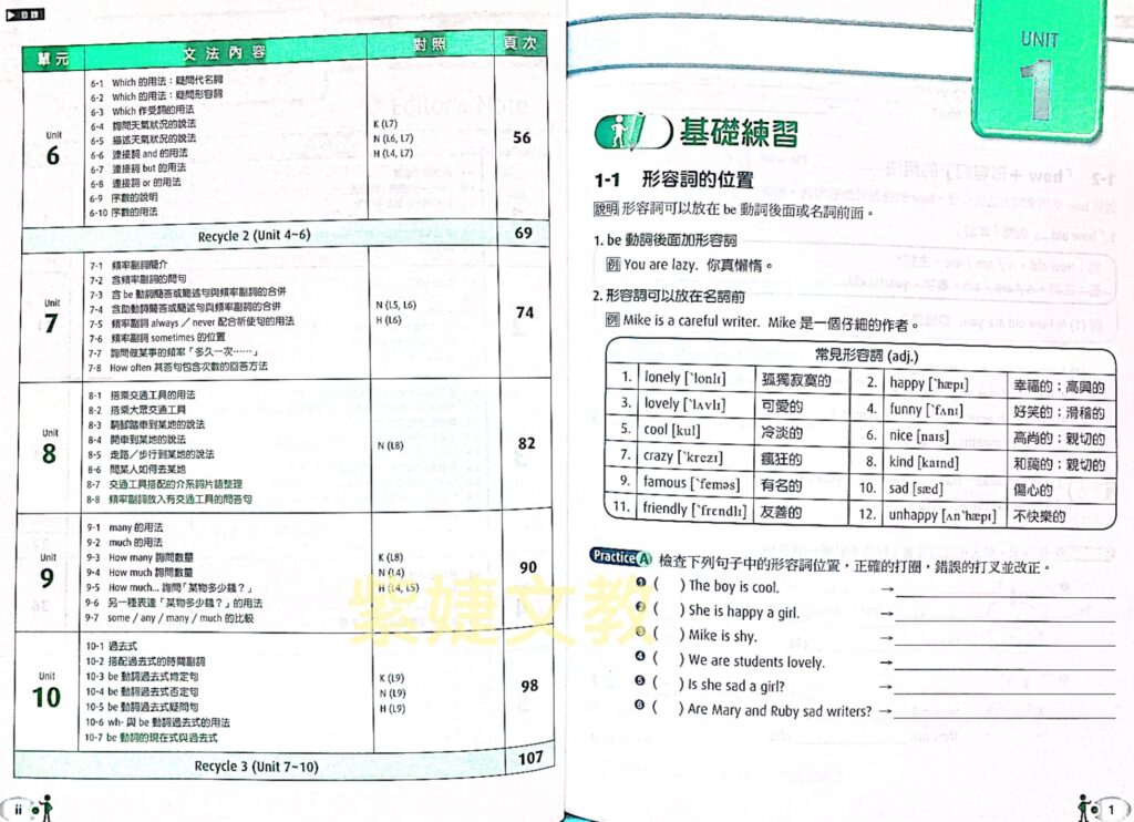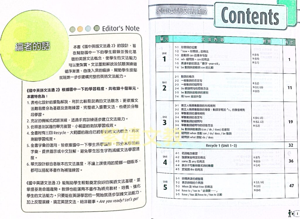 5. 單元設計綜合各版本的文法進度,無論上課使用的是哪一個版本都可以塔配本書成為補強練習。