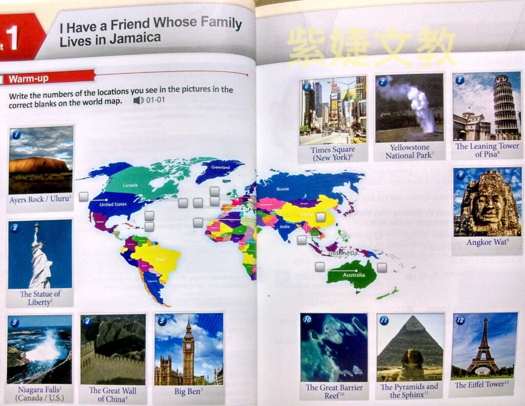 *針對該單元主題預習,呈現方式依主題有所變化,用意在讓學生為本課做準備與課前暖身,帶入會話,並提供口語練習活動。