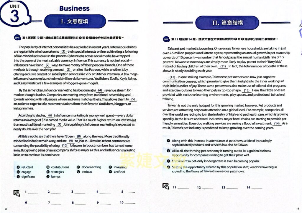 專供英文科文意選填+篇章結構兩大題型