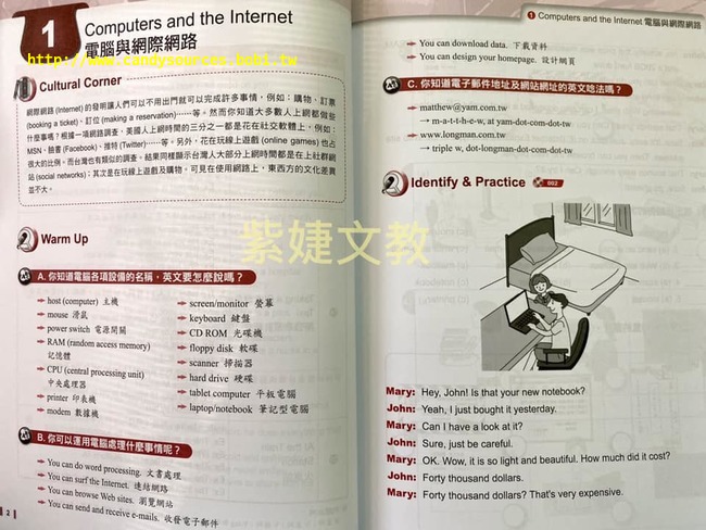 2.Warm Up (暖身練習區):讓學習者可以在正式進入各單元之前,先行熟悉並學習與單元主題相關的英語詞彙及習慣用語。