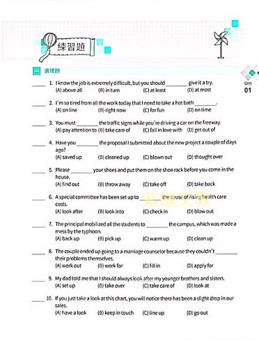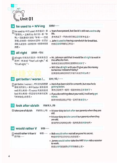 補充同反義用法、重要用法說明、比較近似片語及延伸內容學習,且附例句及中譯,融會貫通片語的相關用法,深度強化閱讀及寫作實力。 - 單元練習最有效!