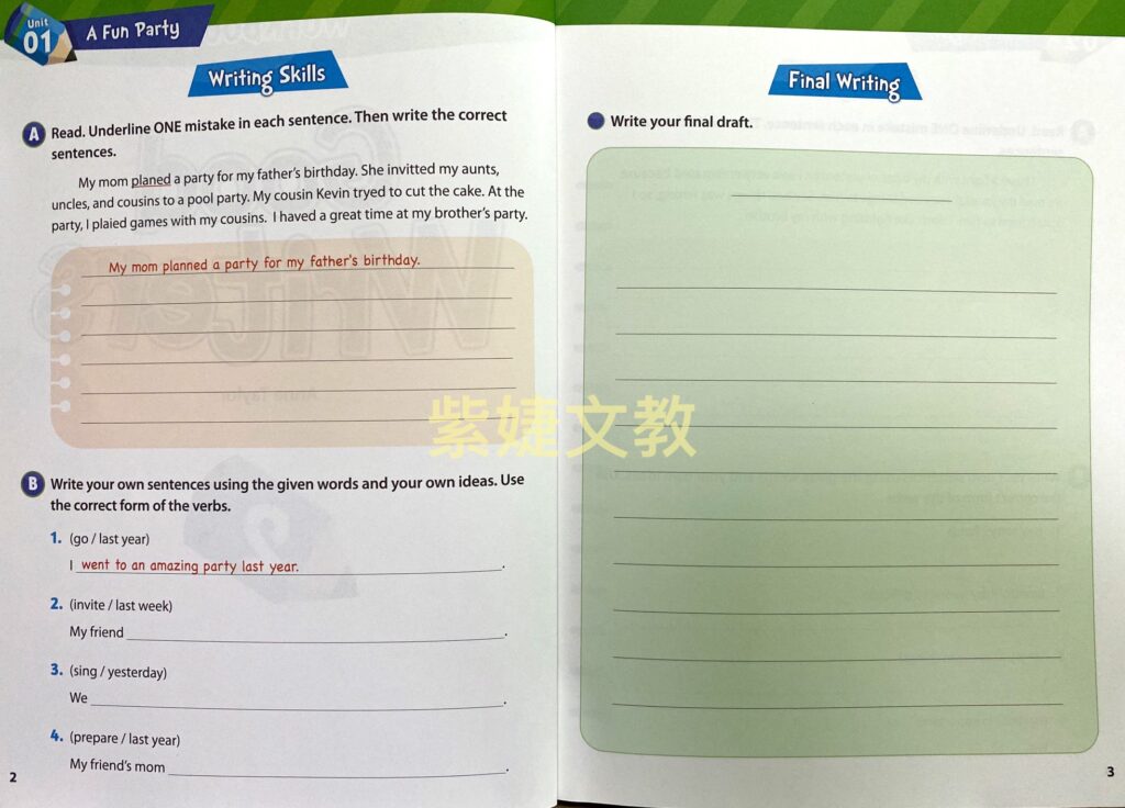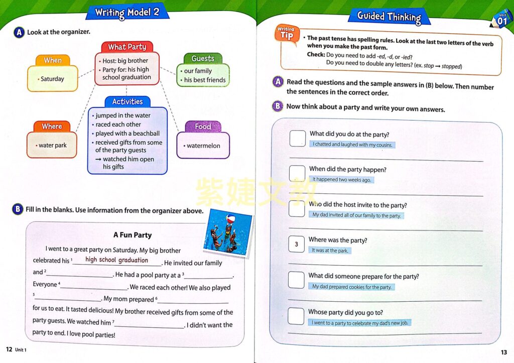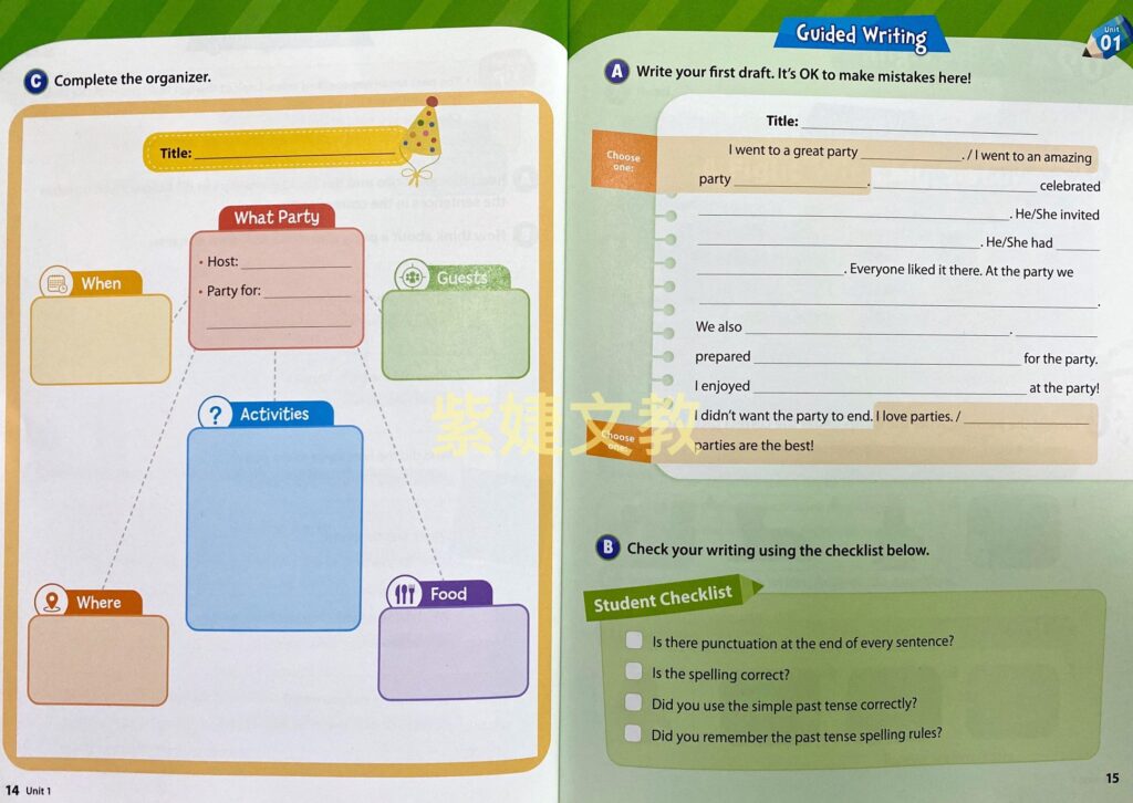 - Fundamental writing patterns and sentence structures highlighted in each unit to build students’ language skills
