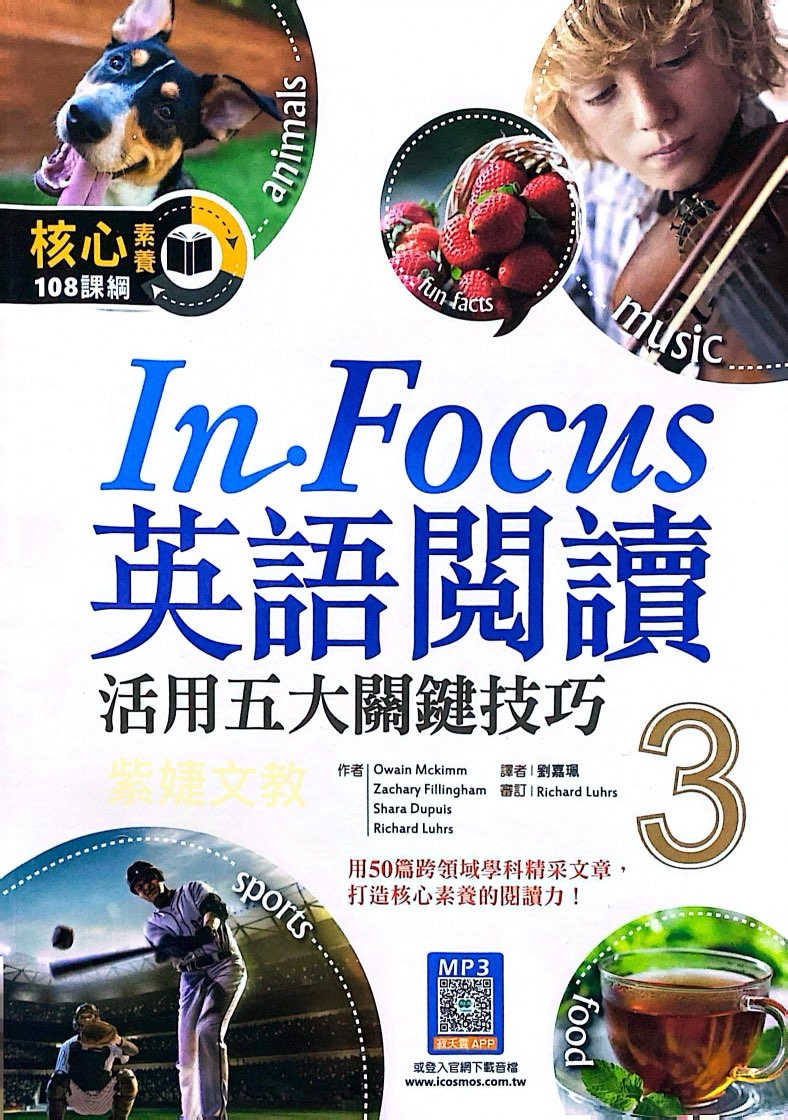 本套書依程度共分四冊,專為初中級讀者編寫。以國中2000字為範圍,內容架構切合108課綱素養精神,文章主題涵蓋跨學科領域多元議題,包羅萬象,貼近年輕讀者日常生活經驗,以30餘個活潑多樣的生活化體裁,寫成50篇閱讀文章,文後並精心設計五題閱讀理解測驗,訓練讀者解讀文意、文意推論、上下文猜義,及看懂影像圖表等技巧,有效整合鍛練閱讀能力,從閱讀中培育扎實的核心素養能力!
