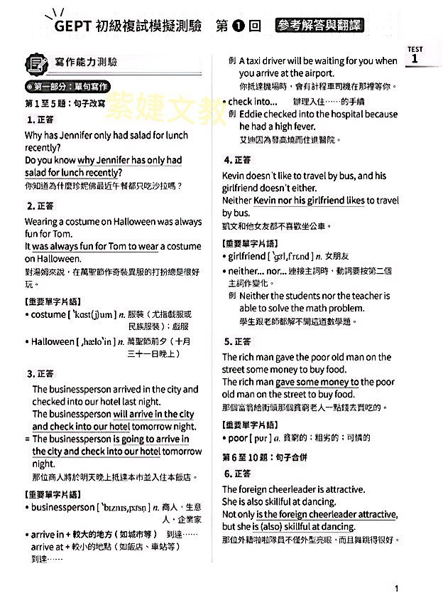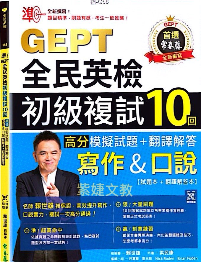 GEPT全民英檢初級複試10回高分模擬試題+翻譯解答(寫作&口說)-試題本+翻譯解答本+QR Code