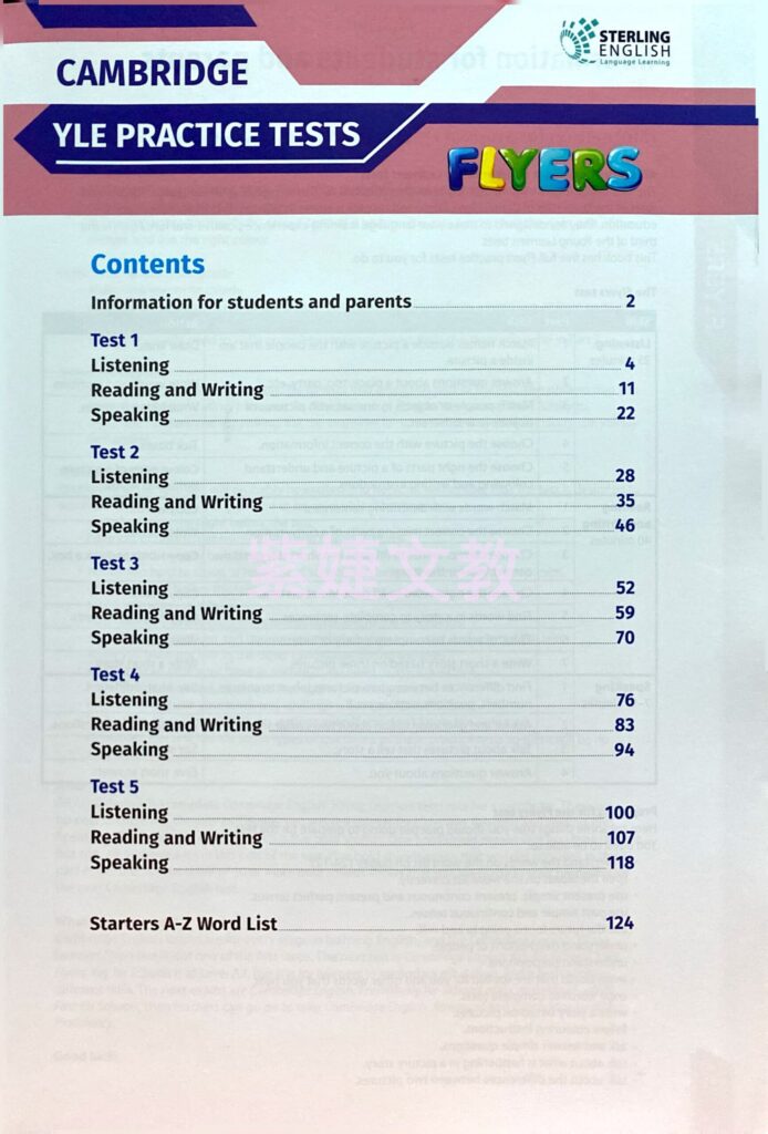 - A-Z Word List which contains all the vocabulary students must be familiar with to do well in the Flyers test