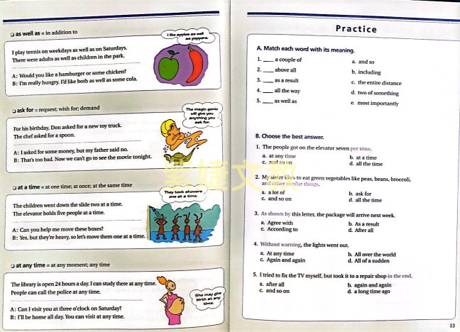 #配合情境的例句與對話幽默的插圖配有練習題加強學生對片語的了解