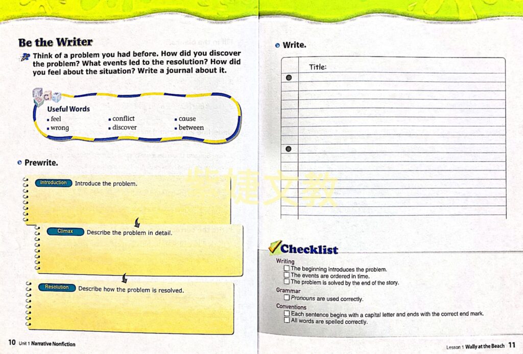 此套教材雖為名為Writing 寫作教材,內容除寫作外,含括單字,閱讀,文法各相關技巧整合教學,對於一般視英文寫作為畏途的學生,可以用較輕鬆的方式,由簡單的句子開始,慢慢的寫出正式的文章。