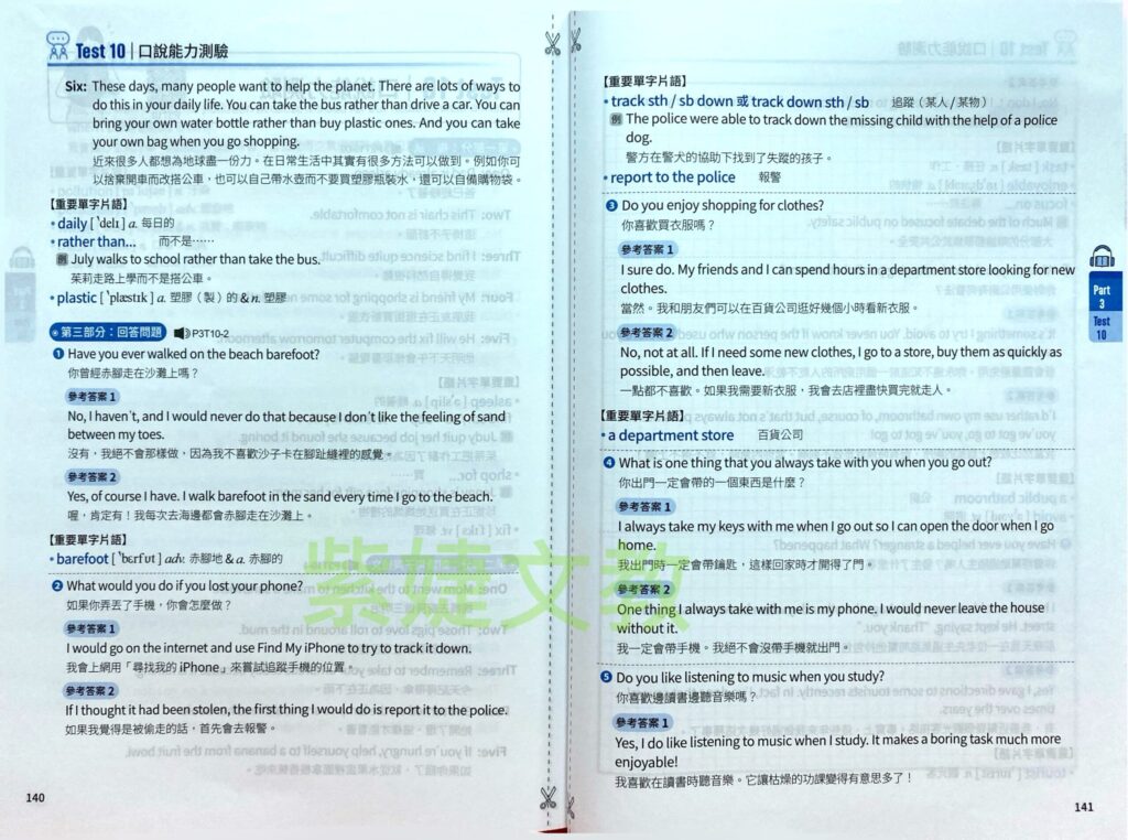 收錄10回「全真」模擬口說題,並附中英翻譯+單字片語補充。讓你從練習中找節奏,熟悉題型,考場對答不慌張、表現更從容!