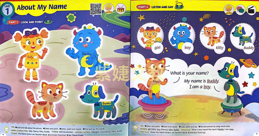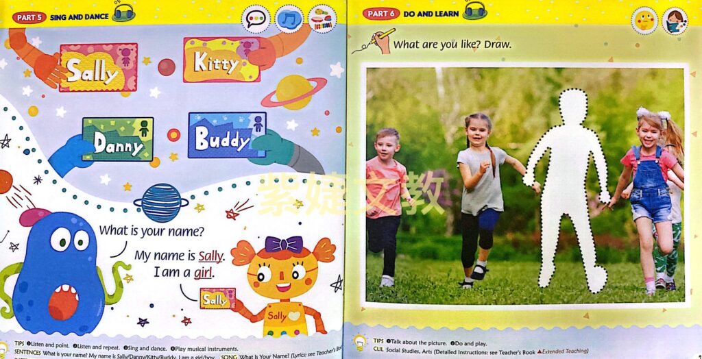 - 品格教育:教材結合說好話、好行為、彼此相愛、建立自信、保持清潔等品格美德,學美語也在養成好品格。