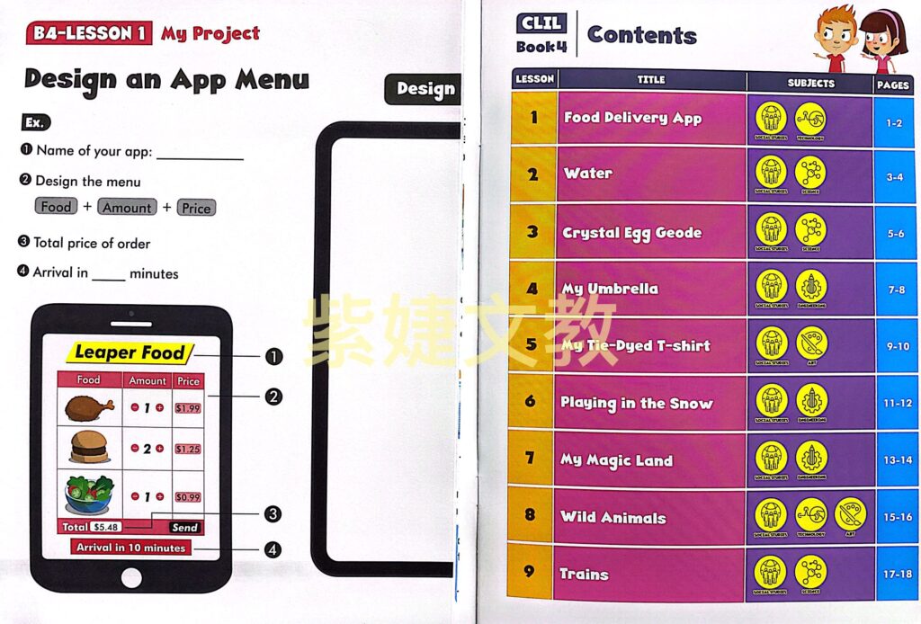 *總共四冊,每冊10單元(每單元4頁/主題及練習題各2頁)。
