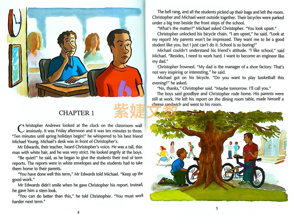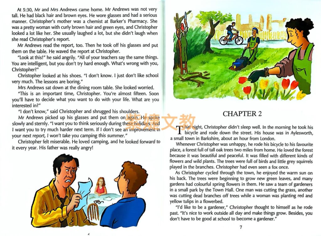 版面:精美大圖呈現閱讀篇章,激發學生的主題背景知識(background knowledge),同時亦降低學習焦慮感。練習題頁面則以簡潔的編排方式,讓教師及學生易於瞭解教學/學習重點。