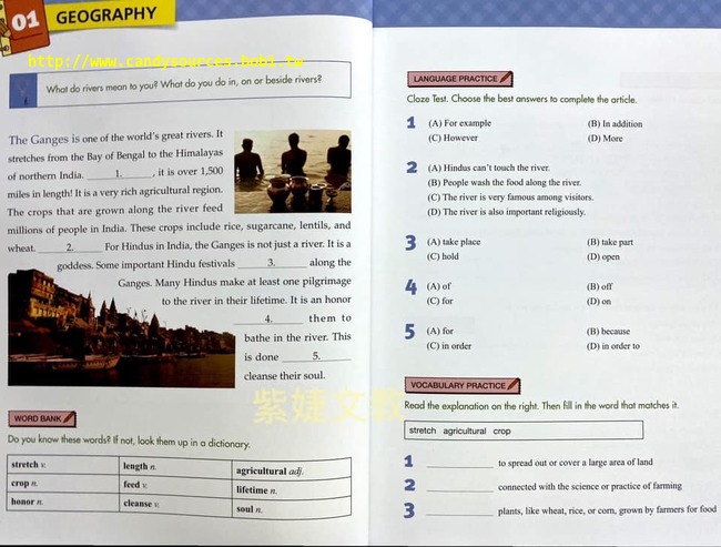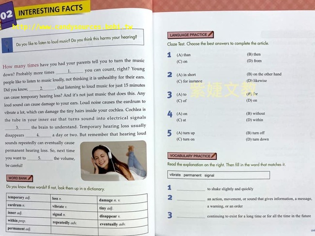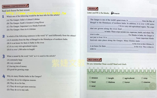 # 練習多樣豐富:包含讀前引導、克漏字、字義配對、閱讀理解問題、聽力填空等