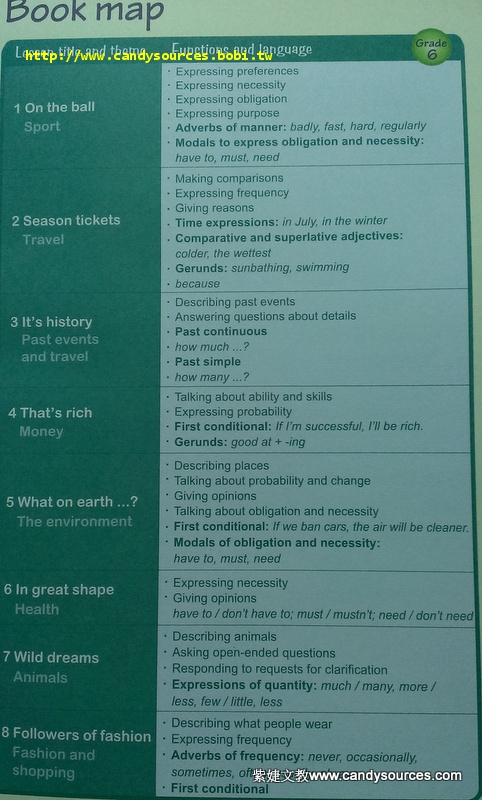 本套書是一系列以語言溝通的方式來開發英語口說和能力的技能,訓練學生表達自己的想法。這系列共分六冊,每階段的文法與字彙皆依照學生年齡與程度做編排。