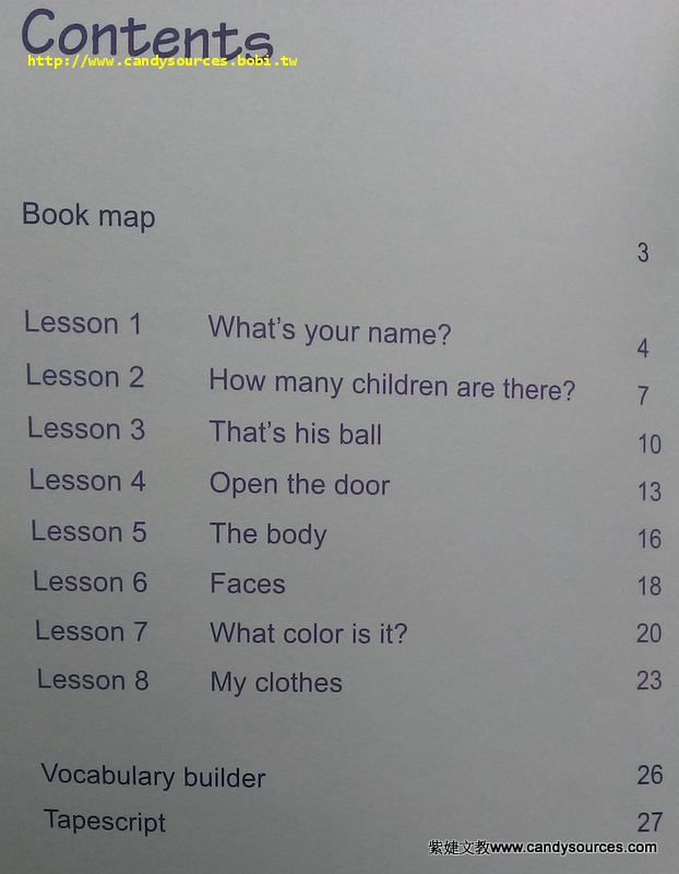本套書是一系列以語言溝通的方式來開發英語口說和能力的技能,訓練學生表達自己的想法。這系列共分六冊,每階段的文法與字彙皆依照學生年齡與程度做編排。