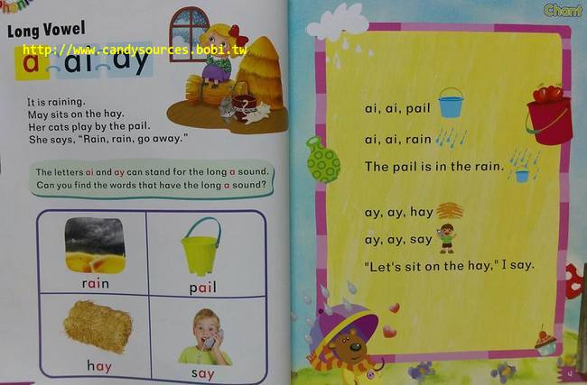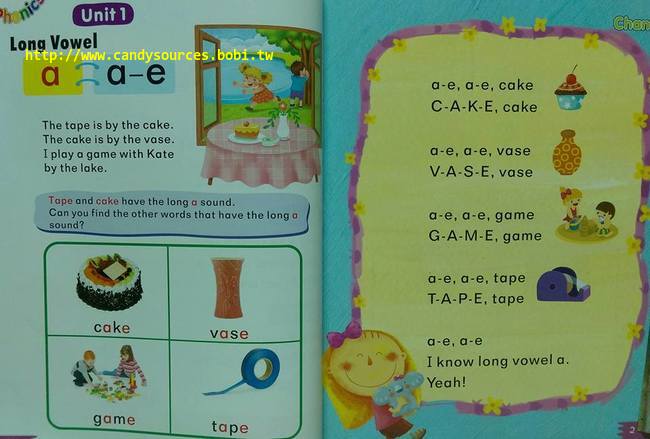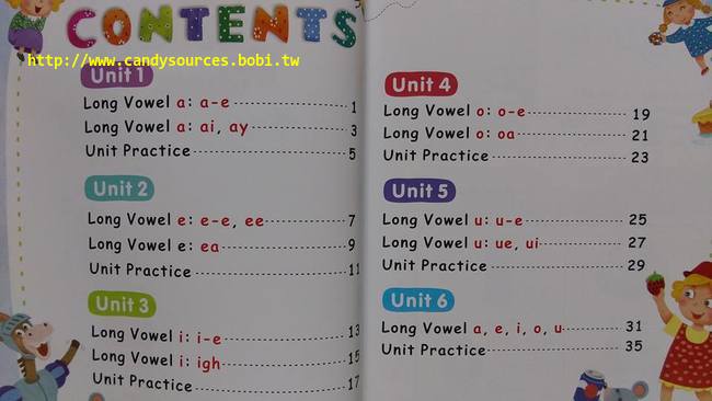每冊6個單元,每單元皆包含:自然發音規則、代表單字、節奏朗文/短文、複習活動、聽力練習。