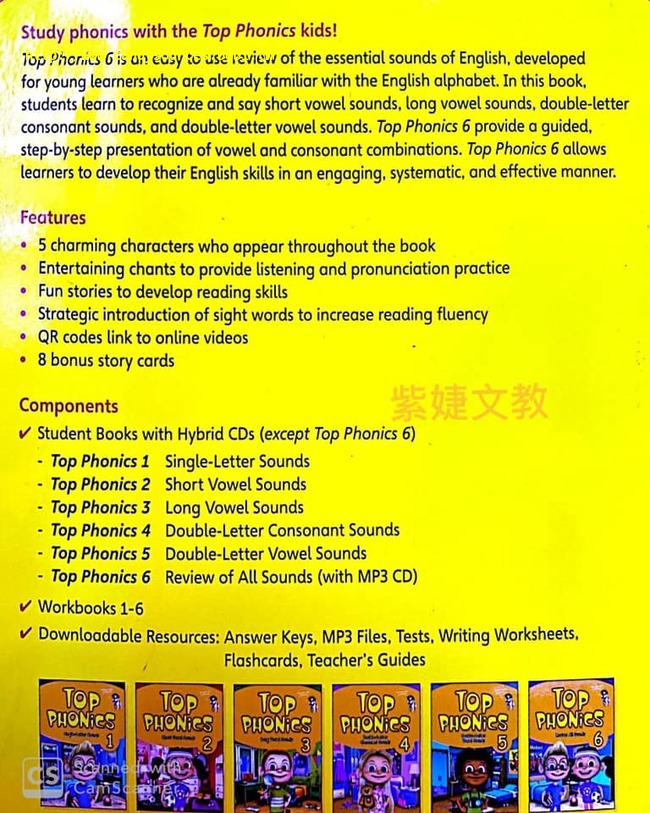 Top Phonics 6 an easy to use review of the essential sounds of English, developed for young learners who are already familiar with the English alphabet. In this book, students learn to recognize and say short vowel sounds, long vowel sounds, double-letter consonant sounds, and double-letter vowel sounds, Top Phonics 6 provide a guided, step-by-step presentation of vowel and consonant combinations. Top Phonics 6 allows learners to develop their English skills in an engaging, systematic, and effective manner.